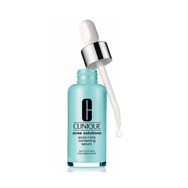Clinique Acne Solutions Acne/Line Correcting Serum. Developed specifically for adult skins that are experiencing breakouts along with lines and wrinkles. Gentle, hydrating formula helps clear and treat acne without dryness or irritation. Potent anti-aging technology visibly lifts skin, improves lines, wrinkles, texture. See skin that's clear, smooth and youthful. Oil-free. Results you can expect: •At 1 week, see a 45% reduction in active acne •At 8 weeks, see a 36% improvement in reducing the appearance of lines/wrinkles and 51% in lifting Clinique Acne Solutions Acne/Line Correcting Serum Gentle, hydrating formula helps clear and treat acne without dryness or irritation. Oil-free